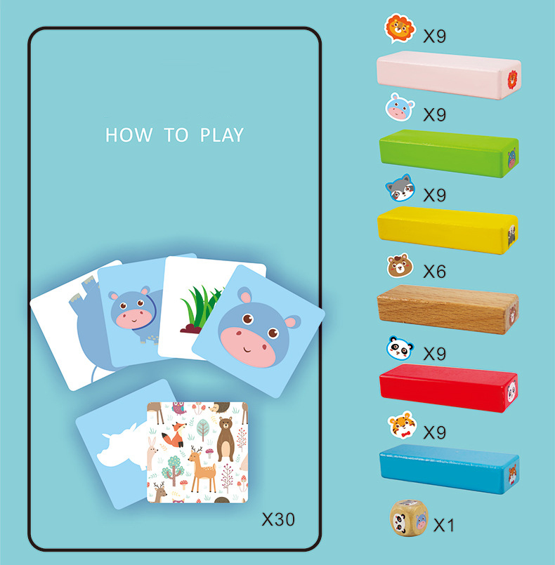 2️⃣ Állatkártyás Jenga kihívás – A dobókocka helyett az állatos kártyák döntik el, melyik blokkot kell kihúznod.