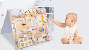 A termék egyik oldala egy esztétikailag gyönyörűen kidolgozott matatófal 19 kiegészítővel, mely tökéletesen fejleszti már a legkisebbek kognitív és finommotorikus képességeit is. A sok kiegészítő segítségével minden gyermek hosszú ideig lefoglalja magát, mialatt kreativitásuk és szem és kézmozgásuk és észrevétlenül fejlődik.